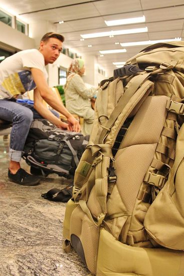 ... verzurren anschließend unsere Schätzchen, damit sie kein Gepäckförderband frisst.