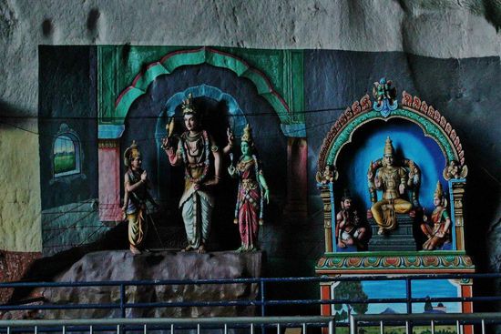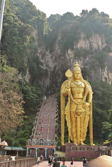 Die Batu Höhlen markieren die aktuelle Endhaltestelle des rasant wachsenden S-Bahn-Netzes. Gewidmet sind die Höhlen dem hinduistischen Gott Murugan, der ein direkter Abkömmling Shivas sein soll. Folglich hat es rund um die Höhlen viele übergroße Statuen, ...