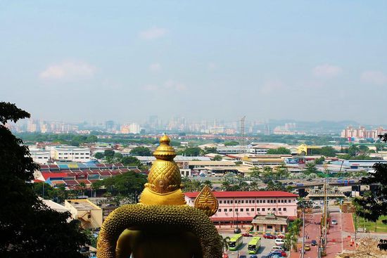 Ist man oben angekommen, lohnt es sich nochmal ein Blick hinter sich zu werfen - bei klarer Sicht bietet sich die Skyline Kuala Lumpurs dem Auge feil.