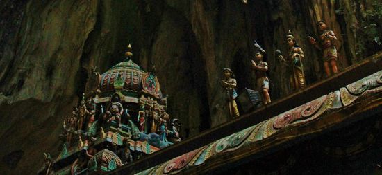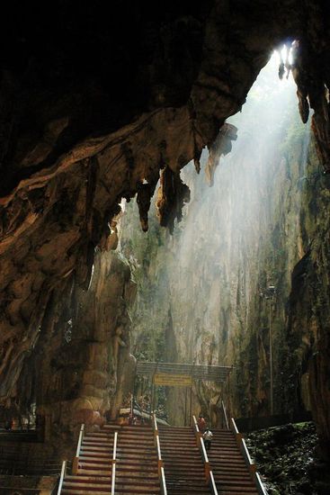 Da wir relativ früh dran sind, haben wir die Höhlen noch beinahe für uns allein. Zuvor heißt es aber erst einmal Treppensteigen - 272 Stufen wollen erklommen werden, um den Höhleneingang zu erreichen. Einen imposanten Zaungast bei der Besteigung mimt die gut 40 Meter hohe Statue Murugans nebst der Treppe.