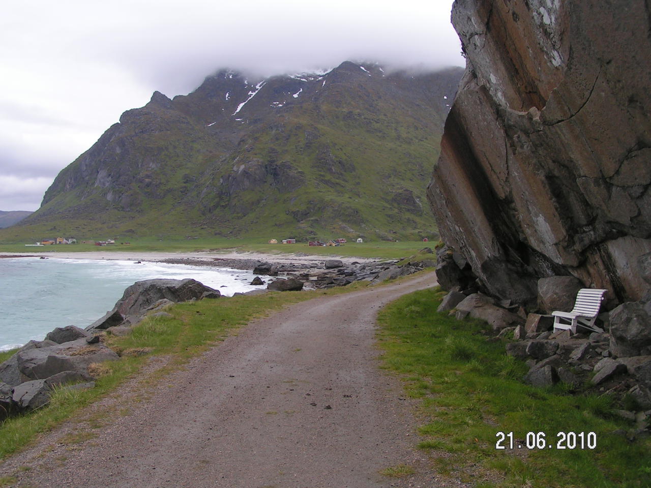Also ab ins Vikingmuseum. Die 70 km bis dahin ziehen sich etwas, speziell am Flakstadpollen, der aber in Wirklichkeit in ca. 15 Minuten umfahren ist.