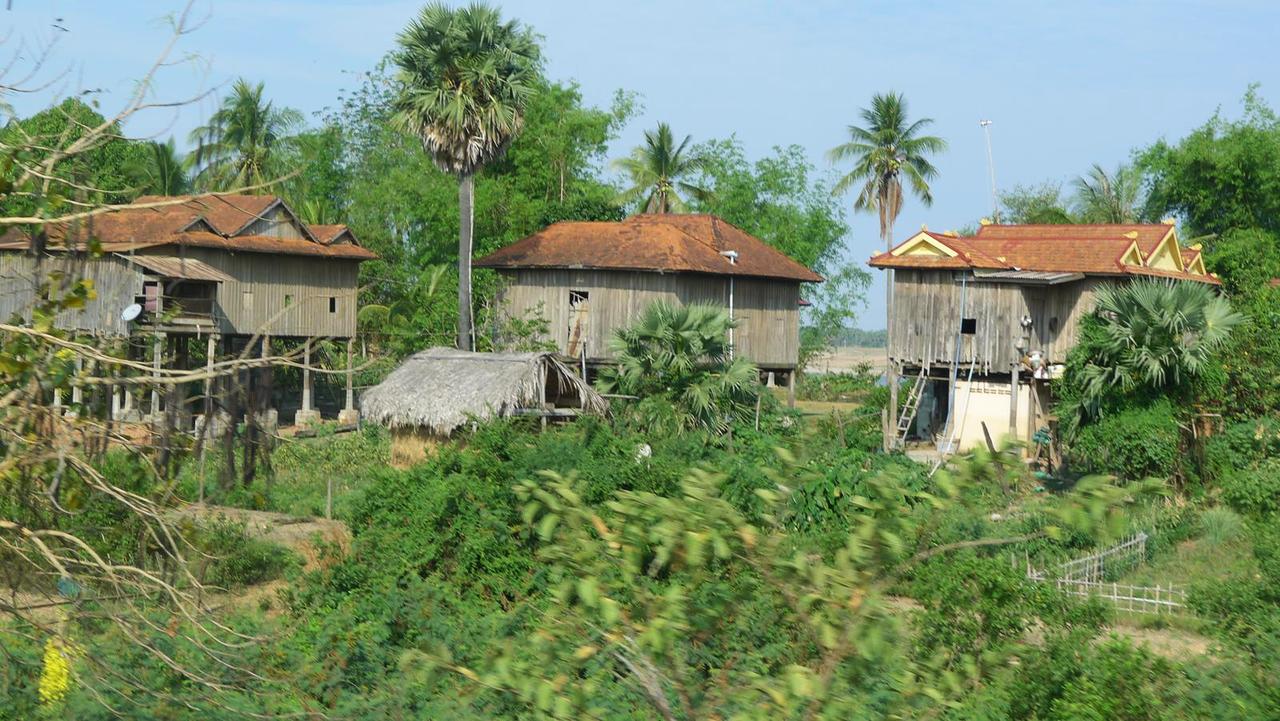Auch auf der Fahrt nach Kratie kommen wir an vielen kleinen Dörfern vorbei. Die Landschaft wird jetzt immer grüner.