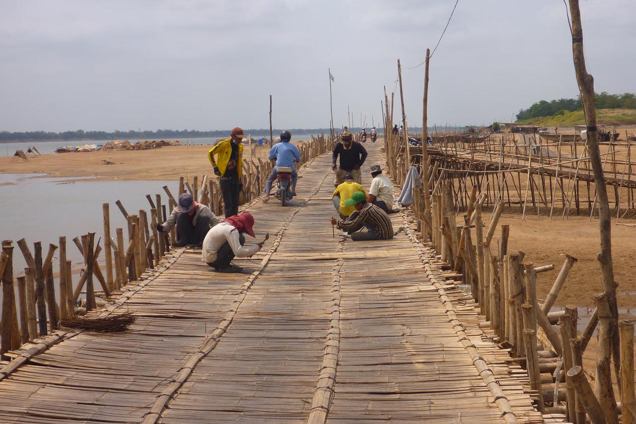Über eine Bambusbrücke ging es auf die Insel Koh Paem, dort wieder kambodschanisches Landleben pur.