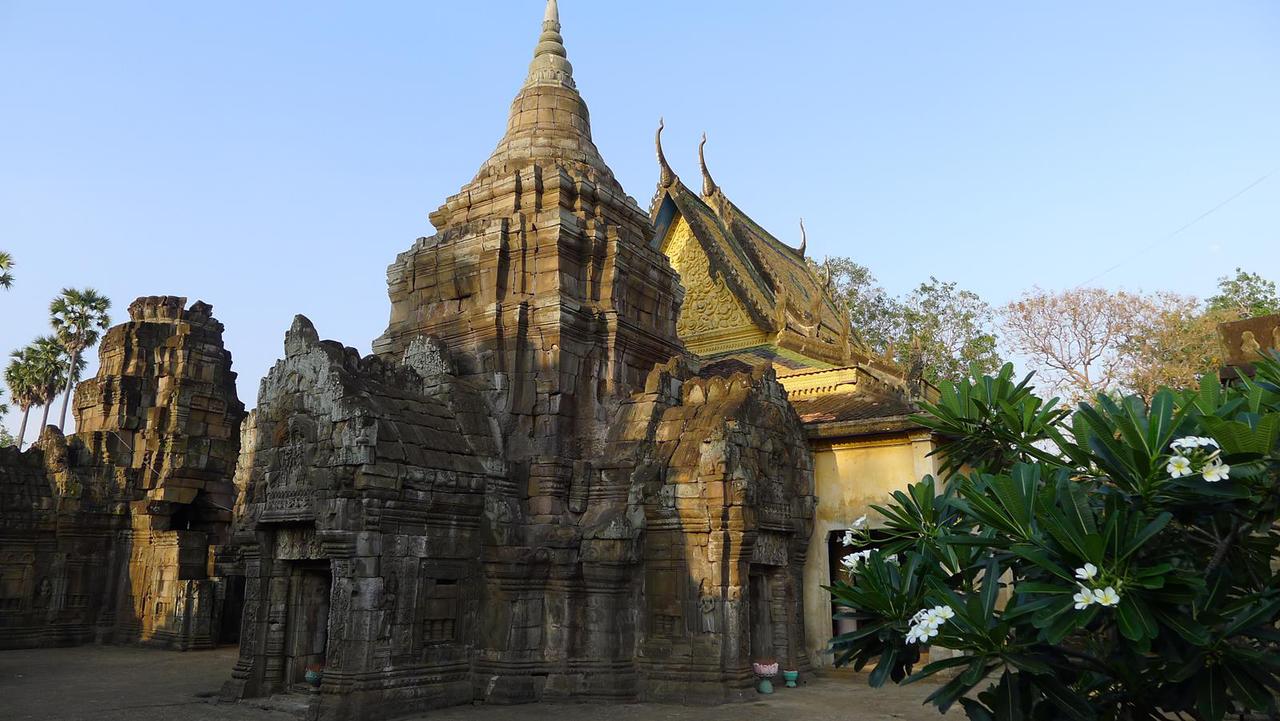 Abends dann noch ein kurzer Besuch des alten Tempels Wat Nokor, nahe der Stadt. Wenn man sich von hinten durch die Felder schleicht, entgeht man auch der Touristen-Polizei