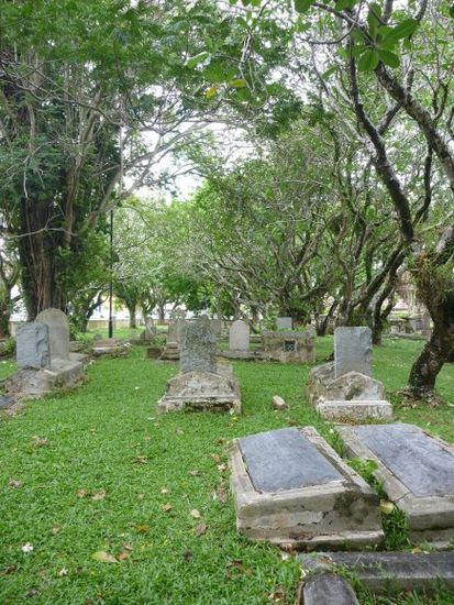 Unser Streifzug führte uns unter anderem zufällig zu dem alten christlichen Friedhof aus der Kolonialzeit. Wieder ein verwunschen erscheinender Ort, an dem wir viel Zeit verbrachten, weil die Lebensgeschichte der Menschen auf vielen Grabsteinen noch zu lesen war. Das dauerte eine Weile. Unter anderem ist dort das Grab des Ehemannes der "Anna", deren Leben in dem Film "Der König und ich" verfilmt wurde.