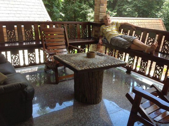 Francescos Thailändische Frau Nee bereitet uns ein Frühstück. Danach fahren wir ein wenig rum und sehen uns die Gegend an. Thomas geht es wieder richtig gut und er macht sogar schon Witze über seinen Zustand. Er meint mit den Löchern in Händen und Füßen ist er jetzt der Heiland von Thailand. Harr, harr, harr. Vor unserem ersten Ausflug geht er zur Massage. Eine dicke Thailänderin, die er erst aufwecken muss, verpasst ihm eine sanfte Ölmassage.