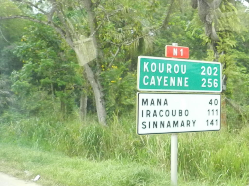 Ich mietete mir also ein Auto, einen Mini, und fuhr - nachdem alles endlos lange dauerte - nach Kourou, wieder über die N 1. Eine ¾-Stunde später war ich im Ort, doch nirgends waren Hinweisschilder zu sehen. Also erst mal rumfahren, denn den Ort wollte ich mir ja auch ansehen, dann doch einen Gendarmen gefragt, der mir entgegenkam. Er sprach sogar englisch! Schnell war die Straße gefunden, ich war gar nicht so verkehrt. Aber wer hätte nach C.S.G. auf den Straßenschildern geachtet, um zur ESA zu gelangen? Das Centre Spacial Guyane (C.S.G.) wird nämlich nur abgekürzt auf den Straßenschildern angegeben.