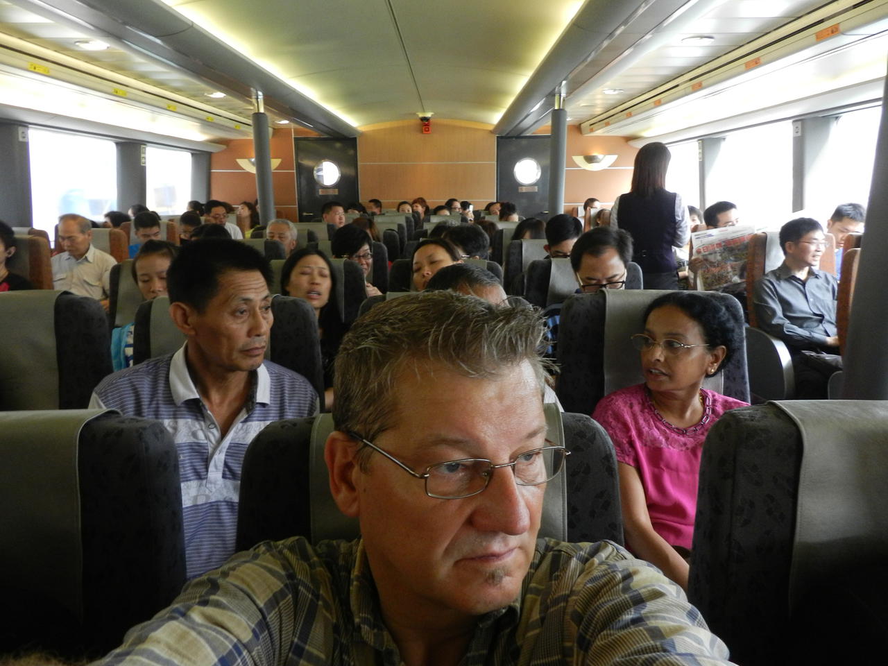 Dann geht´s zurück zum Fährterminal, die Ausreise dauert keine 5 Minuten, und schon düst das Tragflügelboot zurück. Für Hongkong muss man noch einmal eine Einreisekarte ausfüllen, aber das Einreiseprozedere geht dann auch schnell.