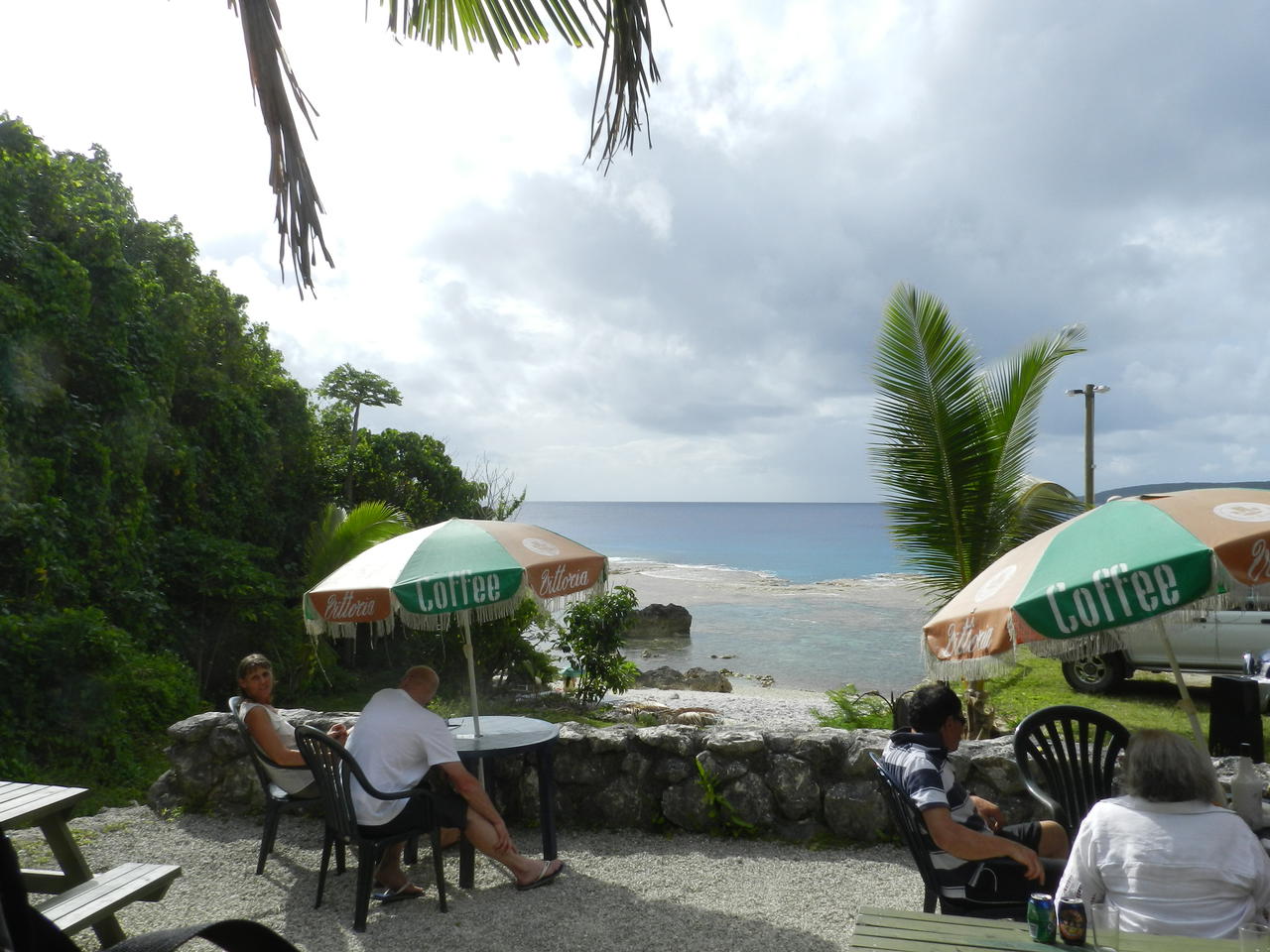 Tja, und die restliche Zeit sind die abenteuerlichsten Unterfangen Ausflüge zu den Walbeobachtungspunkten (die Wale sind aber schon weitergezogen, die Saison ist vorbei), der Besuch im Einkaufszentrum oder ein Abendessen beim Inder. Wir haben uns Fahrräder gemietet und kurven über die Insel. Die Strecken ziehen sich ganz ordentlich, insbesondere weil es sehr heiß ist und unterwegs nichts zu trinken gekauft werden kann. Einmal dachten wir, es würde Sinn machen, bei bedecktem Wetter einen Ausflug nach Avatele an den dortigen Strand zu machen, aber statt der Hitze kamen wir dreimal in heftige Regenschauer. Für drei Tage mieteten wir uns noch ein Auto, um dann auch noch die entlegenen Ecken zu sehen; es lohnt sich, denn es gibt schöne, aber abseits gelegene Seatracks, das sind Buschwege, die zu Strandabschnitten führen, an denen es Höhlen, Steilküsten oder auch mal einen Sandstrand zu finden gibt.
