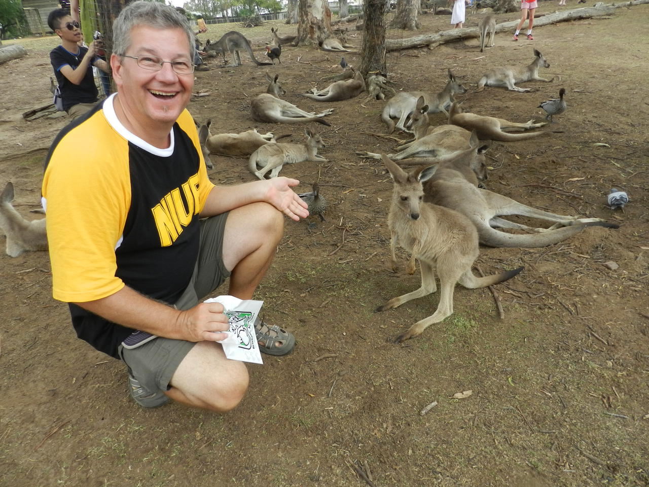 Wenn ich schon mal in Australien bin, wollte ich auch einige der hier heimischen Tierarten sehen, insbesondere Koalas. Känguruhs hatte ich auf der Bahnfahrt ja schon gesehen, Koalas würde ich wohl kaum in den Innenstädten antreffen. Also fuhr ich mit einem Ausflugsschiff in das "Lone Pine Koala Sanctuary", welches aber auch noch andere Viecher zu bieten hat. So sah ich meine ersten Wombats - die mich doch sehr an zu kurz geratene Dickschweine erinnerten -, einige tasmanische Teufel, schwarze Kakadus, Dingos, Warane, Krokodile und natürlich auch wieder Känguruhs. Das war ein Ausflug nach meinem Geschmack, ohne Hektik und viel zu sehen und das auch noch bei tollem Wetter. Damit war es aber pünktlich nach der Rückkehr vom Ausflug schon wieder vorbei, denn abends folgte wieder ein mehrstündiger Wolkenbruch.