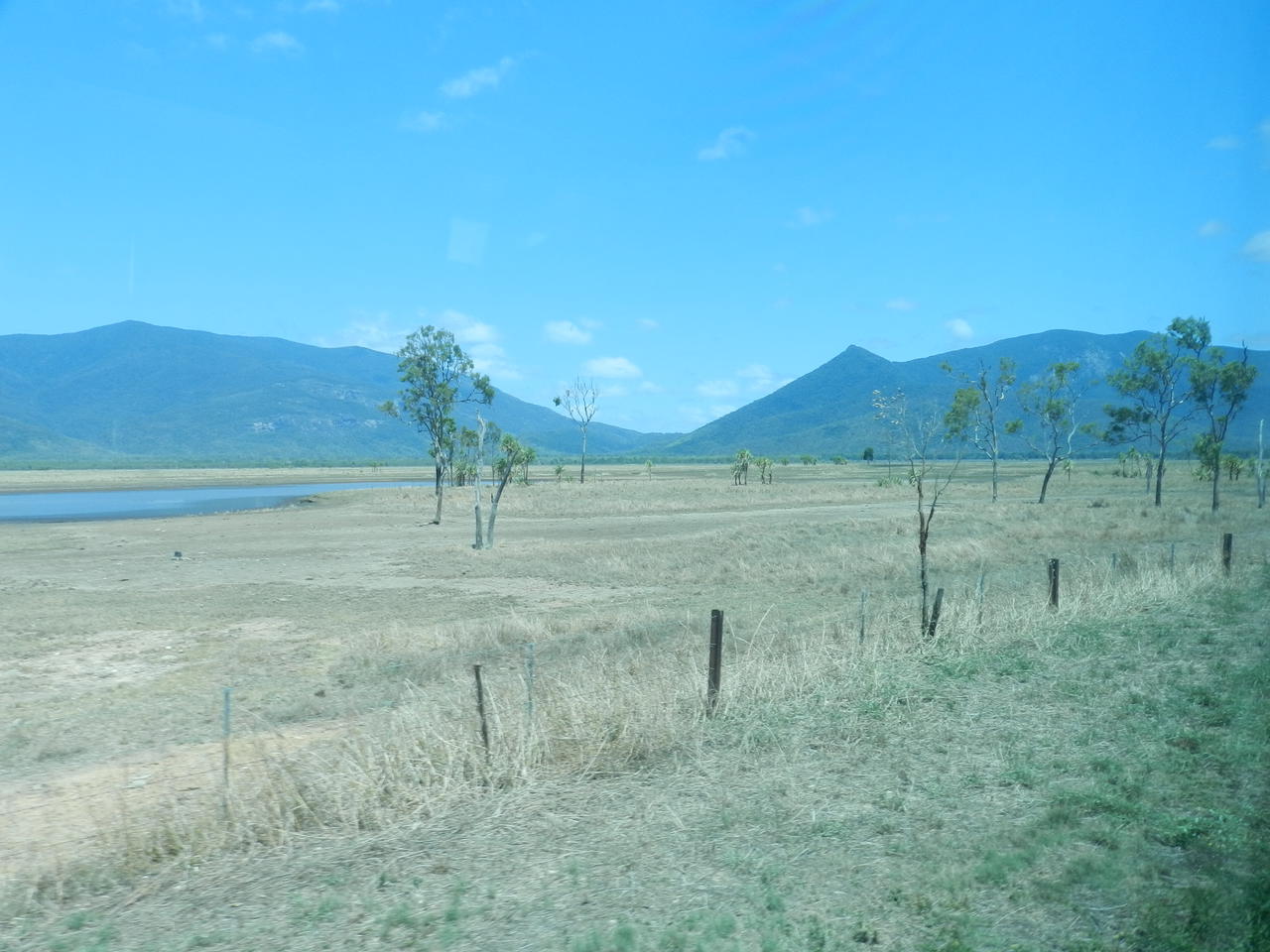Karge, hügelige Landschaften, unterbrochen durch stundenlanges passieren von Eukalyptuswäldern, dann - kurz vor Cairns - mittelhohe Berge - das ist die Bahnfahrt von Brisbane bis Cairns