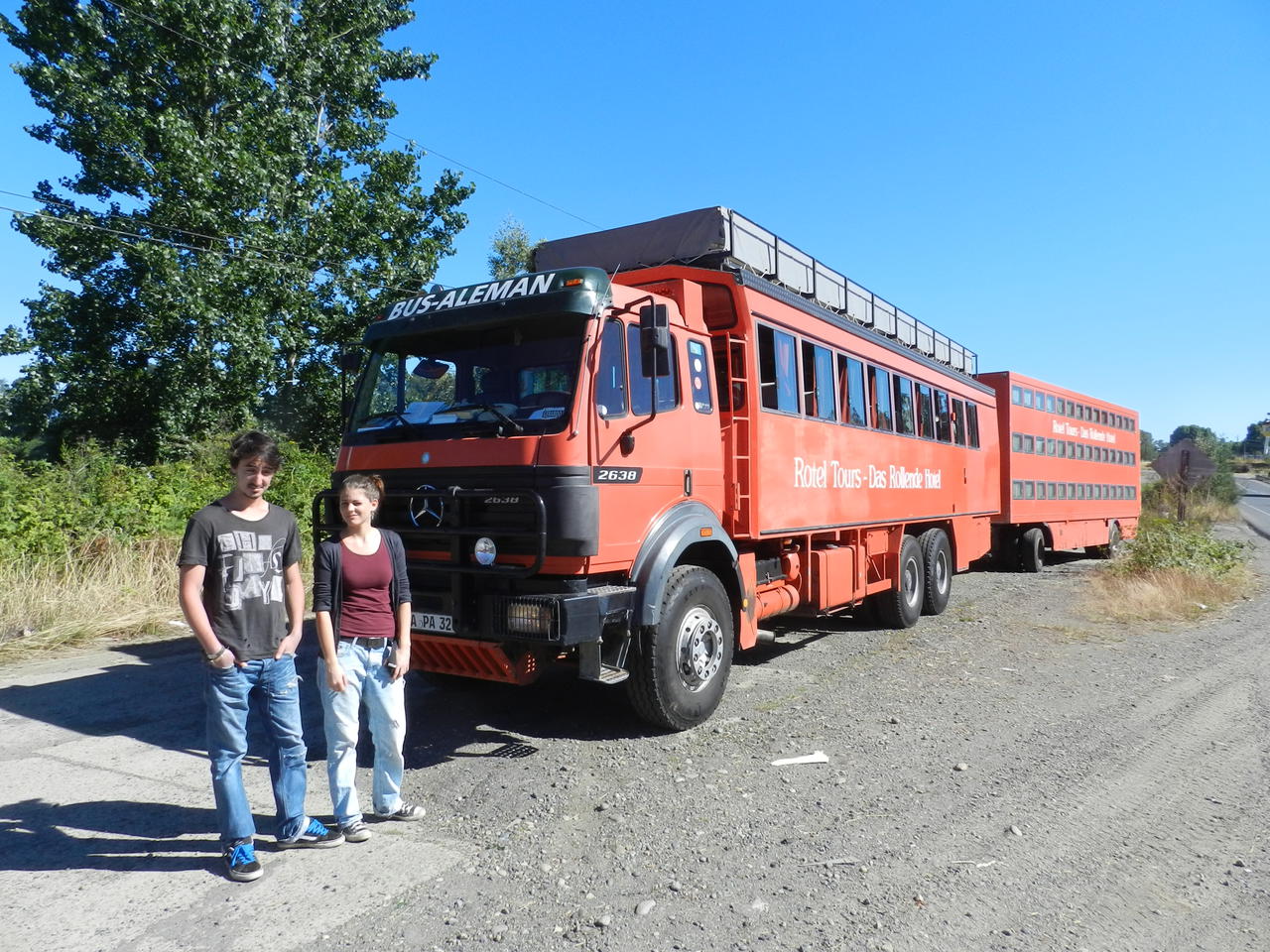 Nun fahren wir zum Llanquihuesee und schlagen auf einem dichtbevölkerten Campingplatz unser Rotel auf. Eine herrliche Seenlandschaft, kristallklares Wasser, saubere und kühle Luft erwarten uns. Die Gruppe hat sich organisiert, der Aufbau des Rotels klappt zügig, alle packen mit an. Gemüse, frisch auf den Märkten unterwegs gekauft, wird geschnibbelt und unser Fahrer, Gerhard, kocht schöne Sachen; auch die Vegetarier in der Gruppe kommen zu ihrem Recht, mit einem coolen Spruch auf den Lippen ist ihm nichts zu lästig, auch wenn er schon mal grantelt, verschmutzt man seinen Küchenbereich. Über das Essen kann ich nicht meckern, es gibt Hausmannskost, etwas, was ich seit Monaten vermisse. Sterne gibt es nicht dafür, aber das erwartet auch niemand. Und satt werden wir allemal.