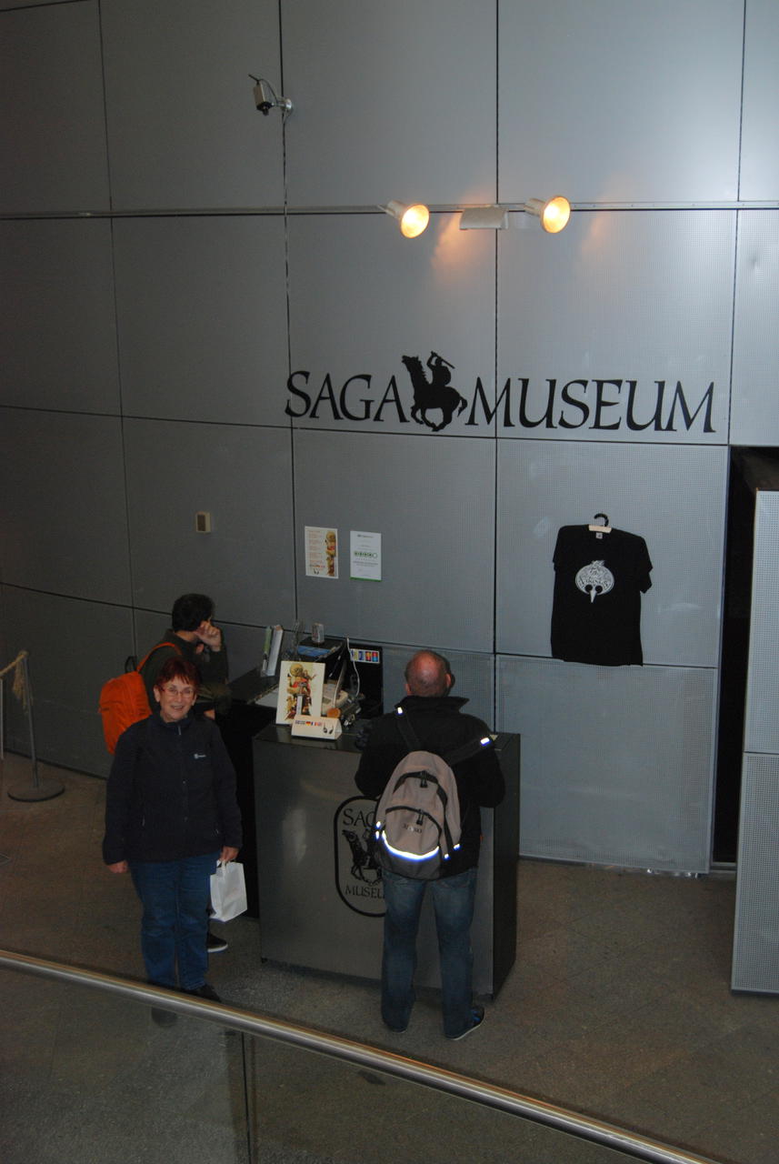 Wir wollten nach Reykjavík und dort in die Perla gehen. Die Perla besteht aus 6 Heißwasserbehältern, die in einem großen Kreis aufgestellt sind. Jeder der Tanks faßt 4 Millionen Liter 85 Grad heißes Wasser. Die große Glaskuppel darüber wird von einem Stahlgerüst und gläsernen Wänden getragen. In dem so entstandenen Gebäude befinden sich mehrere Restaurants und Läden. Von dort führt ein Weg auf die Plattform, von der man einen tollen Blick auf Reykjavík hat. Nach einer Stärkung mit isländischer Fleischsuppe gingen wir durch das Treppenhaus, in dem in regelmäßigen Abständen ein künstlicher Geysir ausbricht, in die untere Etage. Zur Zeit war gerade eine Gesundheitsmesse dort, und wir probierten viele leckere, gesunde Sachen. In einem der Tanks ist dort das Saga-Museum untergebracht, das wir nach der Messe-Runde besuchten. Es ist ganz großartig gemacht. Die wichtigsten Ereignisse der Sagas, die ja die Geschichte Islands darstellen, sind hier mit lebensechten Personen aufgebaut. Am Schluß der Ausstellung zeigt ein Film, wie die einzelnen Personen hergestellt wurden. Von lebenden Personen wurden Kunststoff- und Gipsabgüsse genommen, welche dann weiter verarbeitet wurden. Die entstandenen Figuren sahen absolut lebensechten aus. Während des Filmes saß Christa neben einem jungen Mann, der wie ein typischer Tourist aussah. Dieser blieb aber am Schluß des Filmes sitzen. Erst der Museumsleiter machte uns darauf aufmerksam, daß auch er eine Puppe war. Als wir die Perla verließen, hatte inzwischen das angekündigte Regenwetter begonnen, und der Sturm blies heftig. Wie gut, daß unser Ferienhaus so gemütlich und gut geheizt war.