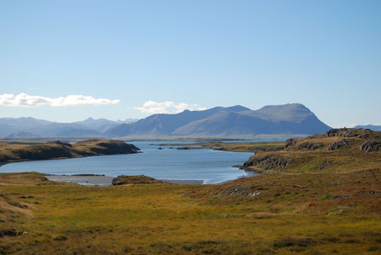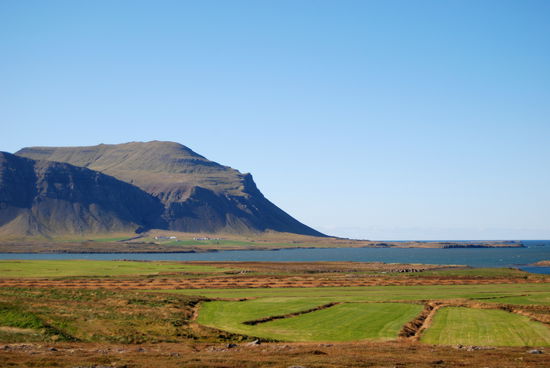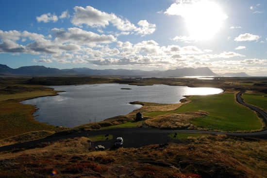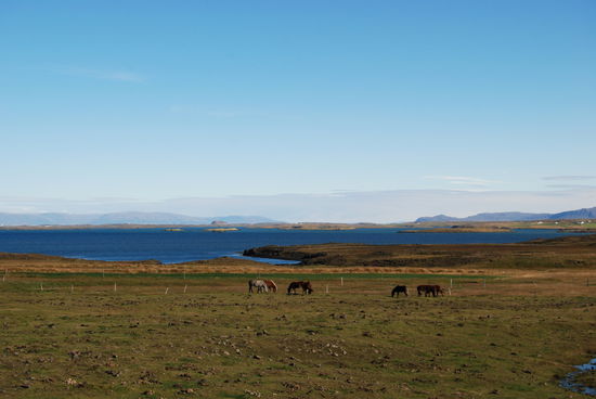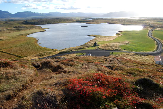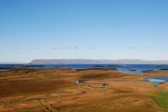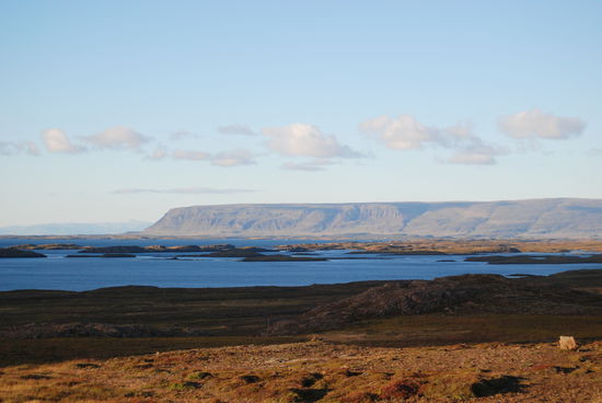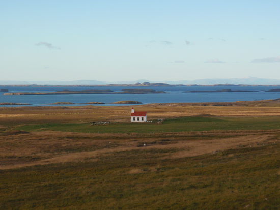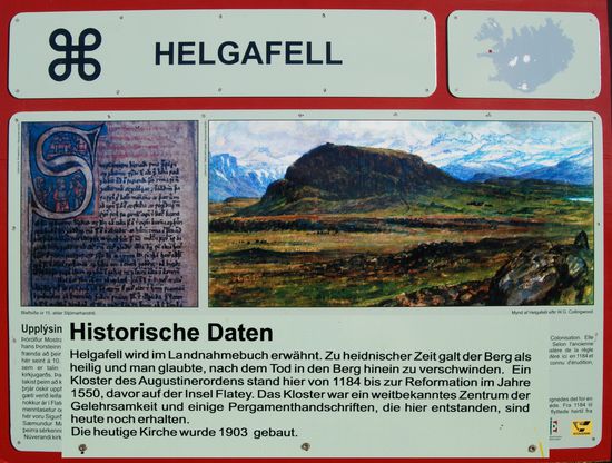 Auf dem Rückweg machten wir einen Abstecher zum Helgafell, ein auffälliger Felsen, den wir schon auf dem Hinweg gesehen hatten. Rainer ist hinaufgestiegen und hat von der Anhöhe viele schöne Fotos gemacht. Schon im Landnahmebuch ist Helgafell erwähnt und war in heidnischer Zeit heilig. Als dann das Christentum die Macht übernommen hatte, wurde hier 1184 ein Kloster errichtet.