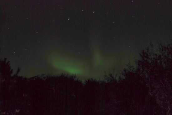 ......und das war noch nicht genug! Am Abend hatten wir Nordlicht, das wir sogar fotografieren konnten. Es hat sich sehr lange gehalten und immer wieder verändert. Wir standen lange vor unserem Häuschen und sahen in den Sternenhimmel!