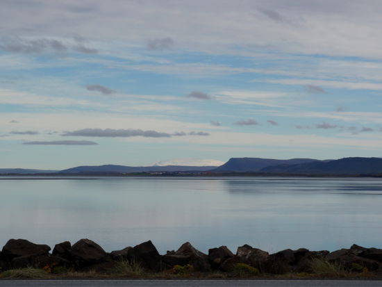 Heute war unser letzter Tag. Bei anfangs noch recht gutem Wetter fuhren wir noch ein letztes Mal nach Borgarnes. Im Touristenbüro konnten wir uns für den Rückflug am Dator einchecken. Im Bonus-Supermarkt kauften wir noch ein paar isländische Spezialitäten zum Mitnehmen. Vom Parkplatz aus hatten wir einen schönen Blick auf den Eiríksjökull. Dann ging es wieder nach Hause.