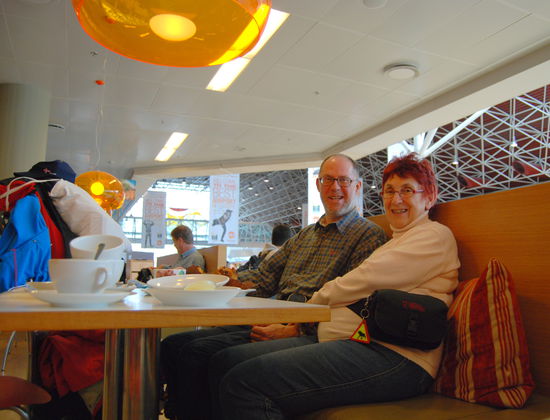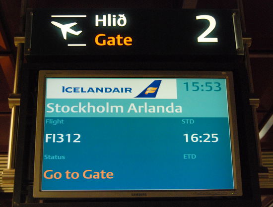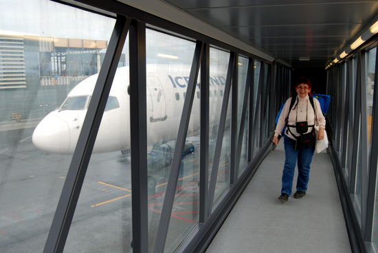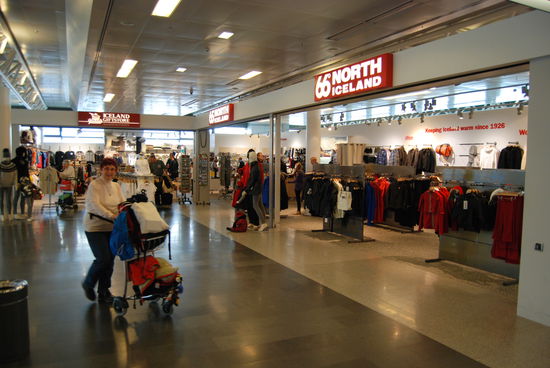 Wir waren sehr früh dran. Vor der Kontrolle aßen wir erst einmal in Ruhe unsere Brote und tranken alles aus, was wir mithatten. Die Läden in der Abflughalle hatten noch geschlossen, bis auf den Elektro- und Buchladen, wo wir uns einen tollen Island-Bildband kauften. Langsam kam Betrieb in die Halle, und die restlichen Läden öffneten auch. Wir stöberten noch ein bißchen in den Souvenirs herum und tranken noch Kaffe und aßen eine Kleinigkeit in einem der Kaffés.