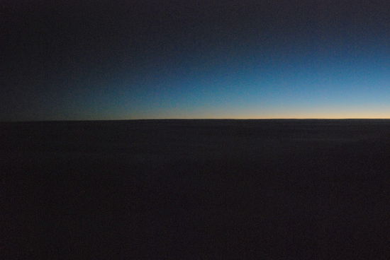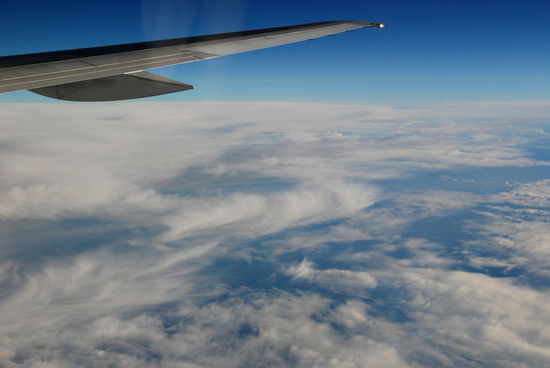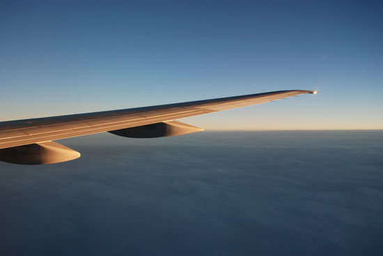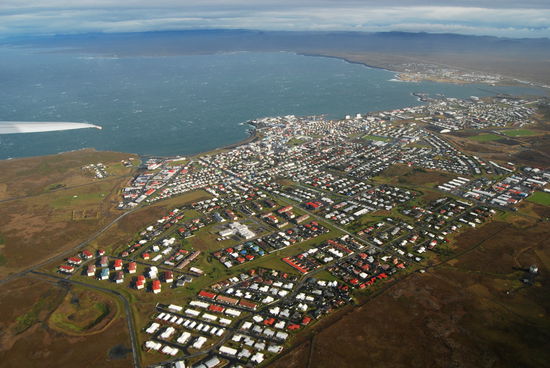Dann wurde es Zeit zum Abflug zu gehen. Die Wolkendecke riß auf, als wir das Flugzeug bestiegen. Beim Start hatten wir einen tollen Blick auf Keflavík. Wir flogen einen Bogen über den Stakksfjörður, dann tauchten wir in die Wolken ein. Über dem Heißtemperaturgebiet Seltún und der Gegend um die Strandarkirkja rissen die Wolken noch einmal kurz auf. Später ging über den Wolken die Sonne unter.