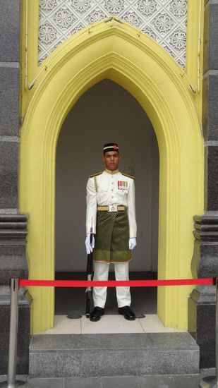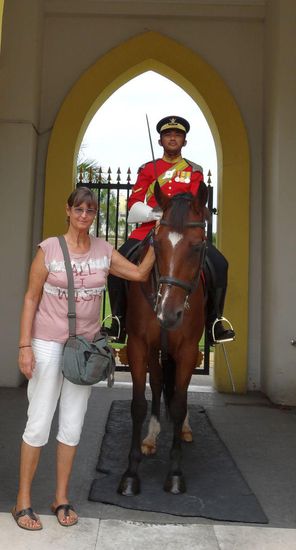 An diesem Tag war eine Hop-on Hop-off Tour angesagt. Das Ticket (45 RM p.P.) gilt 24 Stunden. Wir hatten uns eigentlich gedacht, dass wir die Sehenswürdigkeiten, die uns interessieren, locker in 3 Stunden abgehandelt hätten, aber weit gefehlt. Der Bus hat allein für eine Runde schon knapp 2 Stunden gebraucht. Chinatown und Little-India haben wir als Stopps ausgelassen, davon hatten wir die letzten Wochen schon genug. Einen kurzen Halt am National Palace (da residiert der König), haben wir schon eingelegt. Herr und Frau König haben schon ein schönes Häuschen auf ihrem Grundstück, aber bei der Position steht es ihnen auch zu. Am großen verschlossenen Tor war leider Ende. Ein auch wichtiger Stopp war am "Merdeka Square", denn an diesem Ort wurde am 31. August 1957 Malaysias Unabhängigkeit verkündet.