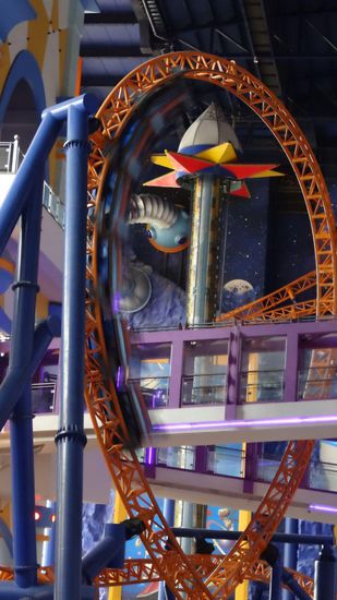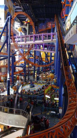 Der "Berjaya Times Square", ist eine 2003 errichtete Megamall, zusammen mit der South China Mall das größte Einkaufszentrum der Welt. Dort haben wir unseren letzten Tag in aller Ruhe und klimatisiert verbracht. Außerdem befindet sich dort der größte Indoor-Vergnügungspark Asiens. Natürlich wollte ich wenigstens mal mit dem längsten Indoor-Rollercoaster (800 m) Asiens fahren, der bis 80km/h schnell wird. Schon zum zweiten Mal kam ich in den Genuß eines Seniortickets, das hier ab 55+ zu einem stark ermässigten Preis angeboten wird, und mit dem man die Fahrangebote den ganzen Tag nutzen könnte. Ein wenig mulmig war mir schon, als ich gesehen habe, mit welcher Geschwindigkeit und wie der Rollercoaster über die Strecke gedüst ist, aber die Zeit ist zu kurz, als das einem schlecht werden könnte. Aber Klasse wars und einmal war auch genug, da wir noch einen längeren Bummel durch die Mall gemacht haben.