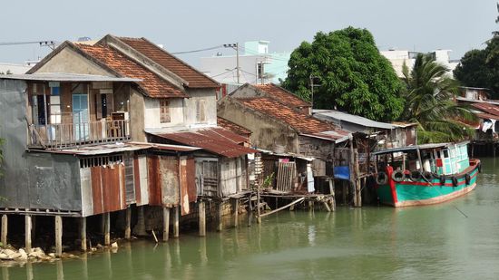 Die Busfahrt ab Terminal Dalat hat noch nicht einmal 4 Stunden gedauert, obwohl noch eine halbe Stunde Pause dabei war. Die Straße überwiegend gut, aber eine ziemlich kurvige und bergige Strecke. Im Anfang noch durch Plastik, dann zunehmend Kaffeeplantagen und Gemüsefelder, das Bergland hinunter, dort Zuckerrohr- und Reisanbau, mit Reisfeldern, soweit das Auge reicht.
