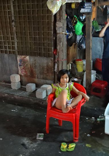 Abends sind wir noch einmal los auf einen kleinen Bummel durch unseren Bezirk, rund um den Financial Tower, und prompt auf einem Straßenmarkt gelandet. Bei Dunkelheit nicht schlecht, sich das Treiben und die Warenangebote anzusehen. Die Händler sitzen mit ihren Familien vor den Ständen, die Kleinkinder werden gefüttert, andere haben sich schon zum Schlafen hingelegt, dazwischen immer wieder Motorbikes, die einem fast die Füsse abfahren. Lebendige Fische, Austern, Gemüse und jede Menge Stände mit allen alkoholischen Getränken, die man sich vorstellen kann. Lediglich die Fleischabteilung war so gut wie leer gekauft. Auf dem Rückweg haben wir uns noch mit einem Drink eingedeckt, damit wir im Hotel auf unser 42-jähriges Kennenlernen anstoßen können.