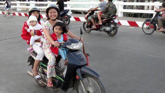 Wohin wollen sie, nach mehreren Versuchen, ach, schreiben sie das doch bitte auf den Zettel, aha nach Can Tho möchten sie. Wohin denn da, in die Stadt möchten wir, oh, in die Stadt. Das ist aber sehr weit (nach unseren Unterlagen etwas über 100 km). Kopfschütteln, großes Palaver zwischen ihnen, dann folgte, am besten sie nehmen ein Taxi, fahren zum Coop-Mart, da fahren manchmal Busse ab. Aber wo genau die hinfahren, konnten sie uns leider nicht sagen.