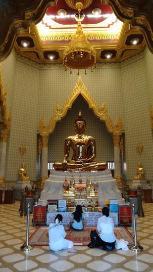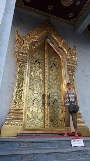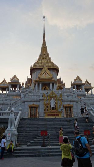 Und schon wieder verpennt, trauen uns gar nicht zu schreiben, wann wir aufgewacht sind..... Nach unserem verspäteteten Frühstück, sind wir erst einmal mit der Fähre gefahren und von dem Anleger bis zum "Wat Traimit", einem buddhistischen Tempel, gelaufen - damals war der Besuch nicht möglich, da er wegen eines anstehenden Besuches vom Sohn des Königs gesperrt war. Heute hatten wir Glück, es war noch geöffnet, obwohl es bereits nach 17 Uhr war. Daher konnten wir auch kein Ticket mehr lösen, aber in aller Ruhe dennoch alles anschauen.