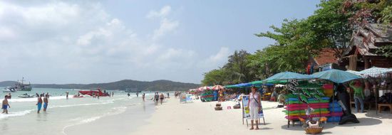 Da wir es nicht so mit früh aufstehen haben, sind wir leider in Koh Samed nur zu Fuß bis zum "Haad Saikaew Beach" gekommen, der liegt dem Jetty am nächsten. Schöner weißer Sandstrand, aber zu viele Menschen, durch die vielen Speedboote war es recht laut und hat nur nach Abgasen gestunken. Vielleicht sind die weiter weg gelegenen Strände aber einsamer und schöner?