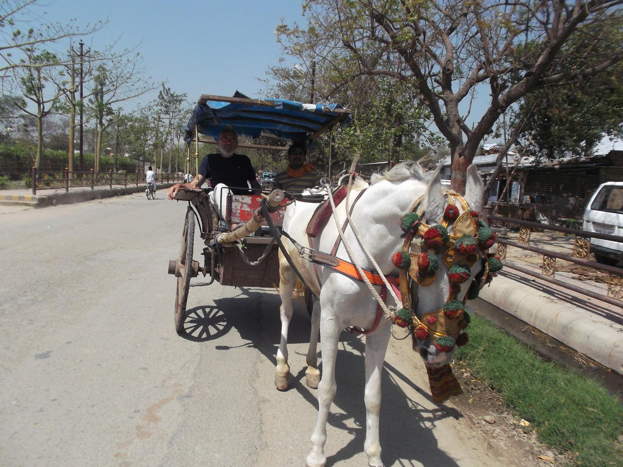 Ist schon Extrem-Tourismus, was ich hier betreibe. Ich habe Probleme, mich zu Fuß durch die engen Straßen - vollgestopft mit Indern und Touristen - zu bewegen und heute bin ich da mit einem Pferdefuhrwerk hindurch unterwegs. War aber auch eine neue Erfahrung. Der Straßenlärm und der Dreck ist aber das größte Problem, das ich dabei habe.