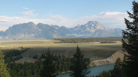 Blick vom Signal Mountain auf Jackson Hole. Jackson Hole ist ein weitläufiges Tal, das größtenteils im Grand Teton N.P. liegt.