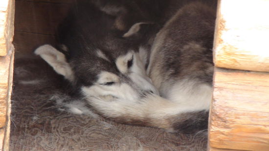 Aber vom Wandern lassen wir uns nicht abhalten. Vom Visitor Center aus geht's den Rock Creek Trail in Richtung Sleg Dog Kennels. Dort besuchen wir die Huskies des Parks. Eine kleine Demonstration gabs von den Rangern auch ohne Schnee.