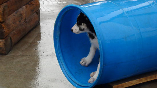 Sobald die Hunde losgelassen, gehts ab wie die Feuerwehr. Im Sommer werden die Hunde, um ihrem Laufdrang gerecht zu werden sogar mit übergrossen Hamsterrädern trainiert.