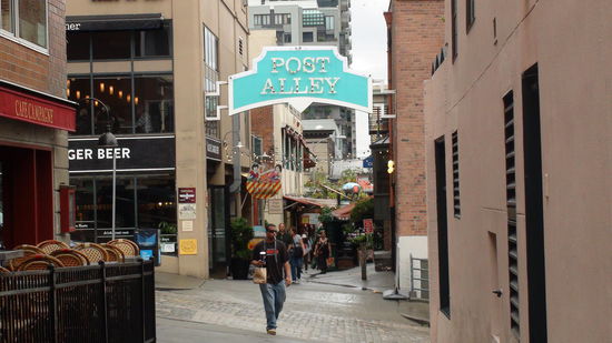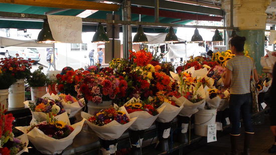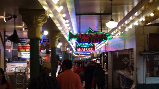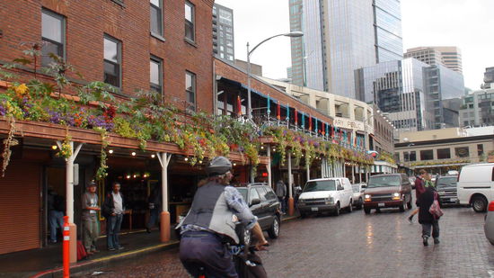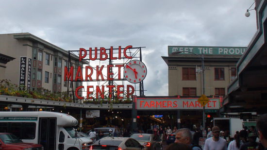 Nachdem wir dem ersten Regenguß entkommen konnten, geht es erst mal zum Pike Place Public Market (auch zu sehen in "Schlaflos in Seattle").