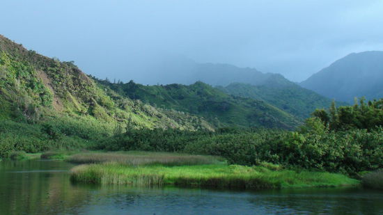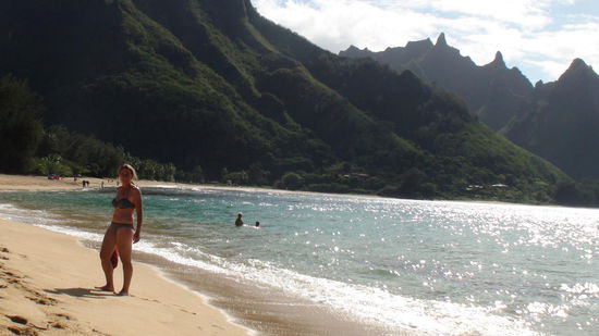 auf der wunderschönen Insel Kauai. Kauai trägt den Spitznamen "The Garden Isle" zu recht, denn hier gibt es die üppigsten Wälder und überall wo man hinsieht ist ein saftiges grün zu sehen. Kaua´i ist eine einzige Tropenlandschaft mit vielen Blumen und Flüssen, paradiesischen Stränden und Wasserfällen.