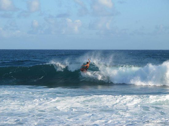 Der Strand besteht aus zwei sichelförmigen Stränden. Die rechte Seite bietet gute Bedingungen zum Surfen und Bodyboarden und wogegen die andere sich ideal zum Schwimmen und Schnorcheln eignet.