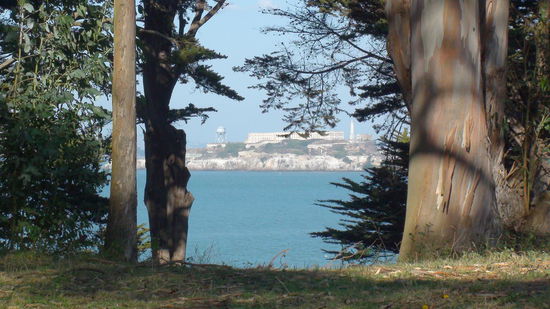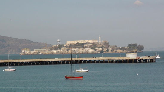 Blick auf die kleine Sandsteininsel, auch "The Rock" genannt. Von 1933 bis 1963 wurde Alcatraz zum berüchtigsten und gefürchtesten aller Bundesgefängnisse der USA für unverbesserliche Straftäter. Bekanntester Häftling von Alcatraz war der Mafiaboss Al Capone.