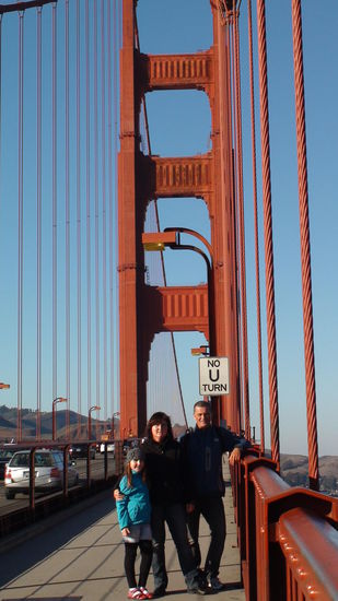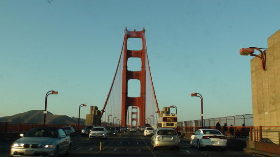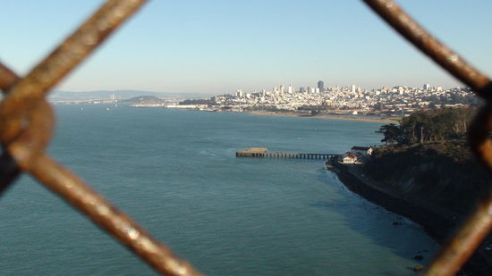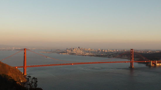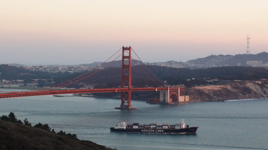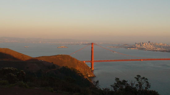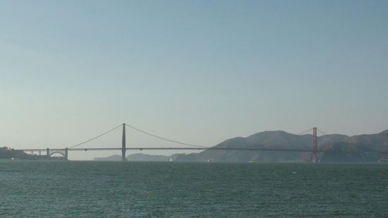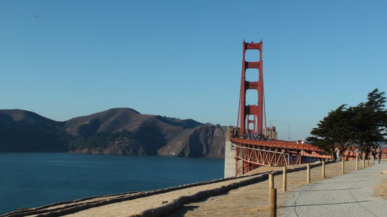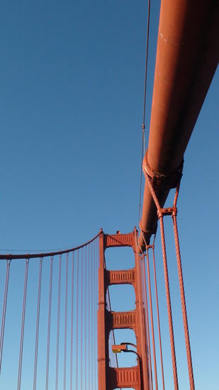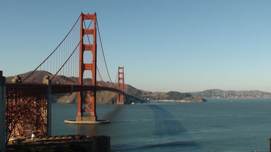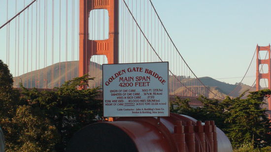 Die Brücke wurde 1937 nach vier Jahren Bauzeit fertiggestellt und überspannt die Meerenge zwischen dem Pazifik und der Bucht von San Francisco. Die Golden Gate Bridge ist 2,7km lang, 27,5m breit und umfasst sechs Fahrbahnen. Sie schwebt etwa 70m (je nach Wasserhöhe) über dem Wasser. Die stählernen Hängeseile haben einen Durchmesser von knapp einem Meter und eine gesamte Länge von 2,3km.