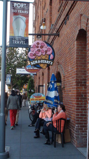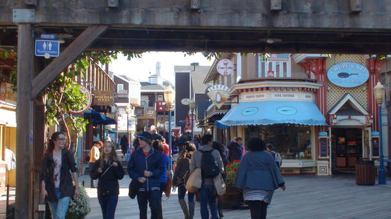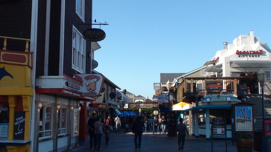 Am Pier 39 - dem beliebteste Ort im ganzen Viertel. Hier findet man neben einem ganzjähriger Rummelplatz mit Fahrgeschäften auch viele Souvenirläden und Restaurants mit leckerem Fisch.
