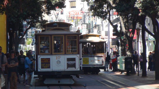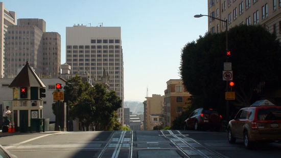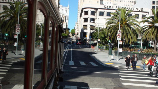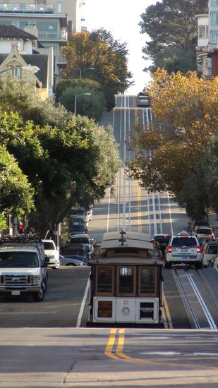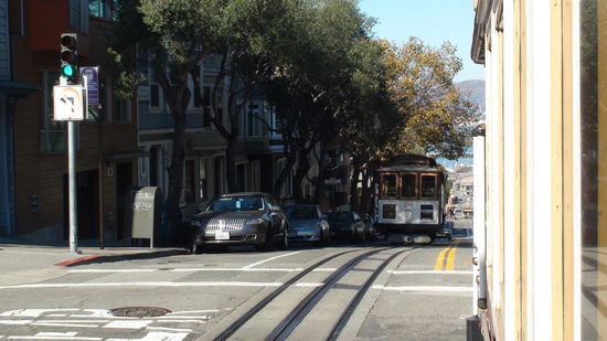 Auf einer Fahrt mit den berühmten Cabel Cars erlebt man, wie hügelig es im Nordosten San Franciscos ist.