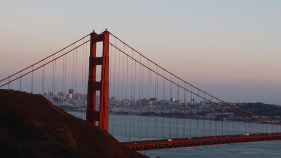 Die Golden Gate Bridge San Francisco ist wohl die bekannteste Hängebrücke der Welt. Sie ist mit ihren beiden 227m hohen, orange gefärbten Pylonen weit sichtbar und somit das markanteste und bekannteste Wahrzeichen San Franciscos, vielleicht sogar der gesamten Westküste der USA.