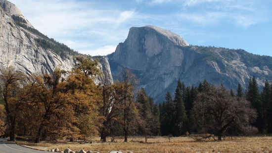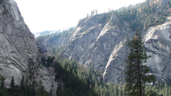 Das Yosemite Valley ist nur 13 km lang und weniger als 1.600 Meter breit mit Granitwänden, die steil, fast senkrecht an beiden Seiten des Tales 1,000 Meter hochragen. Neun herrliche Wasserfälle stürzen ins Tal. Fünf davon sind über 300 Meter hoch. Das Wassser des Yosemite Falls fällt über 750 Meter in mehreren Stufen, ehe es auf Felsen prallt. Damit ist er der höchste Wasserfall Amerikas.