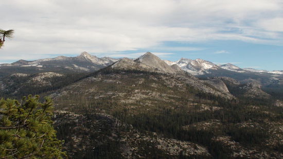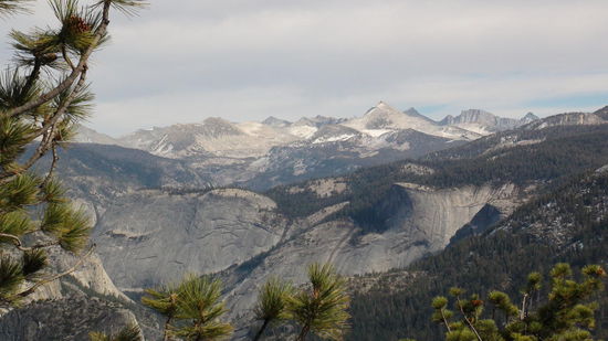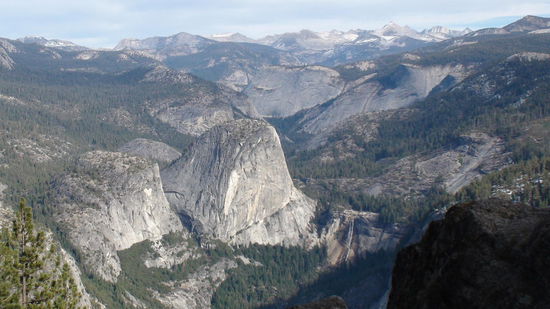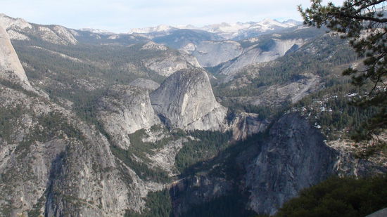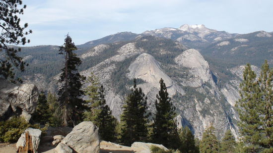genießen wir eine spektakuläre Aussicht ins Yosemite Valley und die Berge der Sierra Nevada