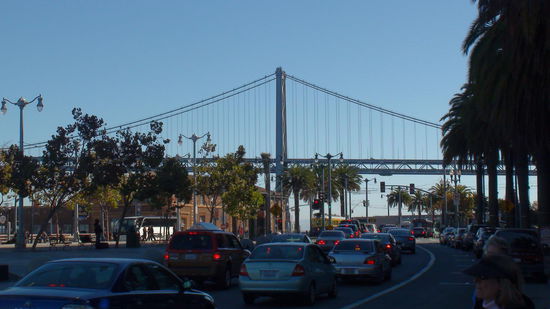 Die San Francisco-Oakland-Bay Bridge ist nicht nur sechs Monate älter, sie ist auch deutlich länger als die berühmtere Golden Gate Bridge.
