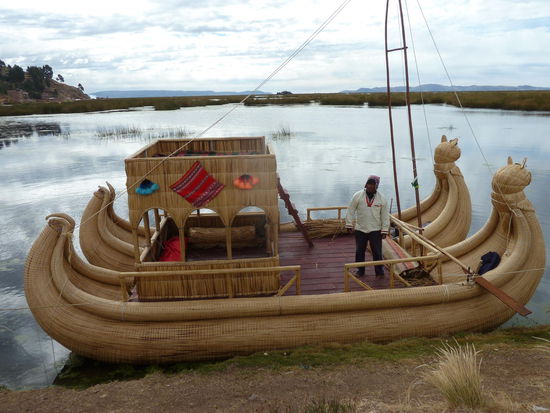 Die Uros sind sehr offen und fröhlich. Plötzlich kommt Wind auf. Unser Schiff wird fast fortgetrieben. Im letzten Moment können es die Männer wieder festbinden.