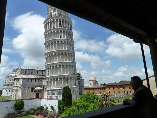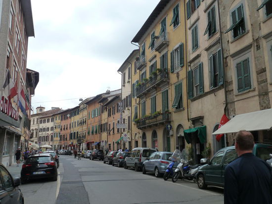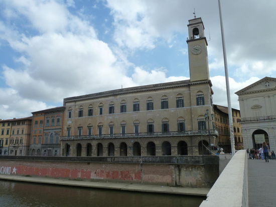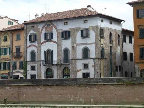 Auf der Prachtstraße betrachten wir das Geburthaus von Gallileo Galilei und laufen zum Arnoufer, wo der zweite schiefe Turm leider ganz oben eingerüstet ist. .