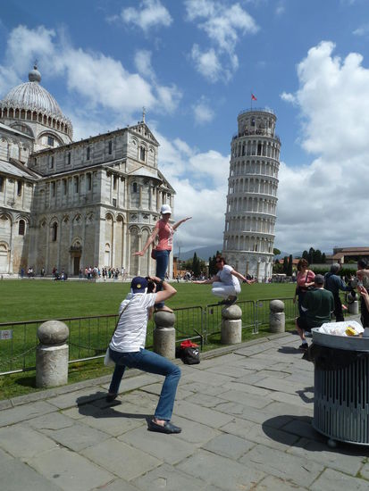 Ein paar Eindrücke der Massen, die sich außen vor den Souvenirshops tummeln oder in typischer Touristenmanier - 'den Turm stützend' - für Fotos posieren, muß ich natürlich auch festhalten.