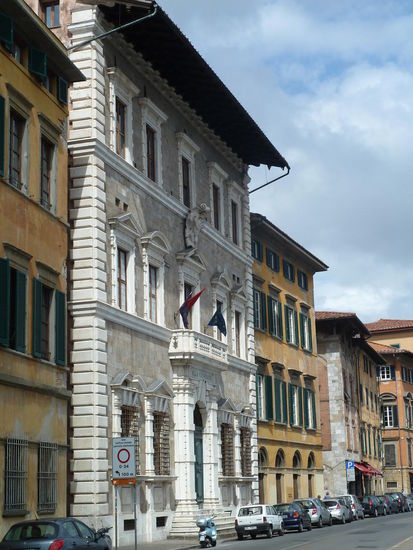 Das Gebäude mit Sgrafitto-Dekorationen entstand als Sitz des Ritterordens und ist heute Sitz der Eliteuniversität. Links daneben liegt der Palazzo dell' Orologio, der aus zwei Gebäuden entstanden ist und einen Torbogen zur Erhaltung des Durchganges der Straße hat.