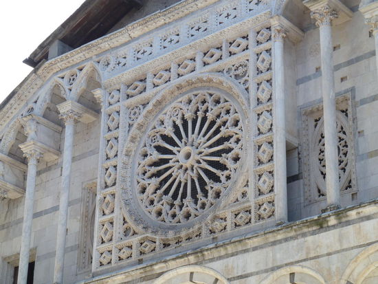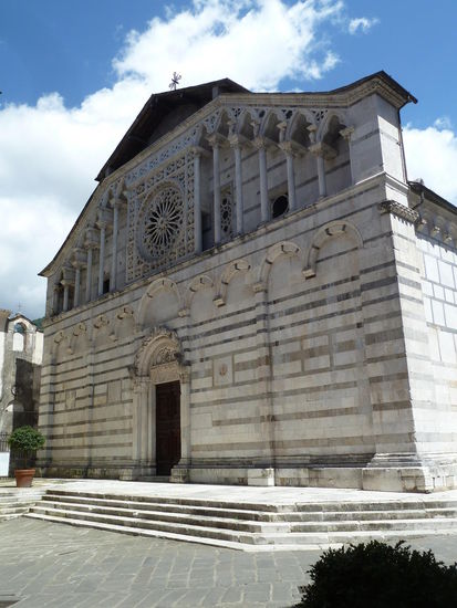 Carrara ist eine Arbeiterstadt mit ca. 70000 Einwohnern. Das wichtigste Bauwerk ist der Dom mit seinem Rosettenfenster aus dem 14. Jahrhundert, seiner Fassade im Pisaner Stil und seiner Statue von Maria Verkündigung im Inneren.