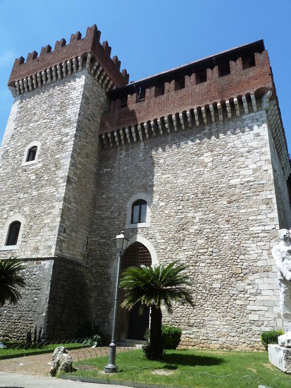 Auf den Mauern der alten Festung, von denen man einen fabelhaften Ausblick auf die Stadt und ihr östlich gelegenes Seebad hat, erhebt sich ein anmutiger Renaissance-Palast, dessen feine Marmorsäulen und Fresken in einem starken Kontrast zu den grimmigen Türmen des ursprünglichen Baues stehen. Nach dem Zweiten Weltkrieg wurde das Castello als Gefängnis benutzt, doch seit einiger Zeit sind Restaurierungsarbeiten im Gange, die den alten Glanz zurückbringen sollen